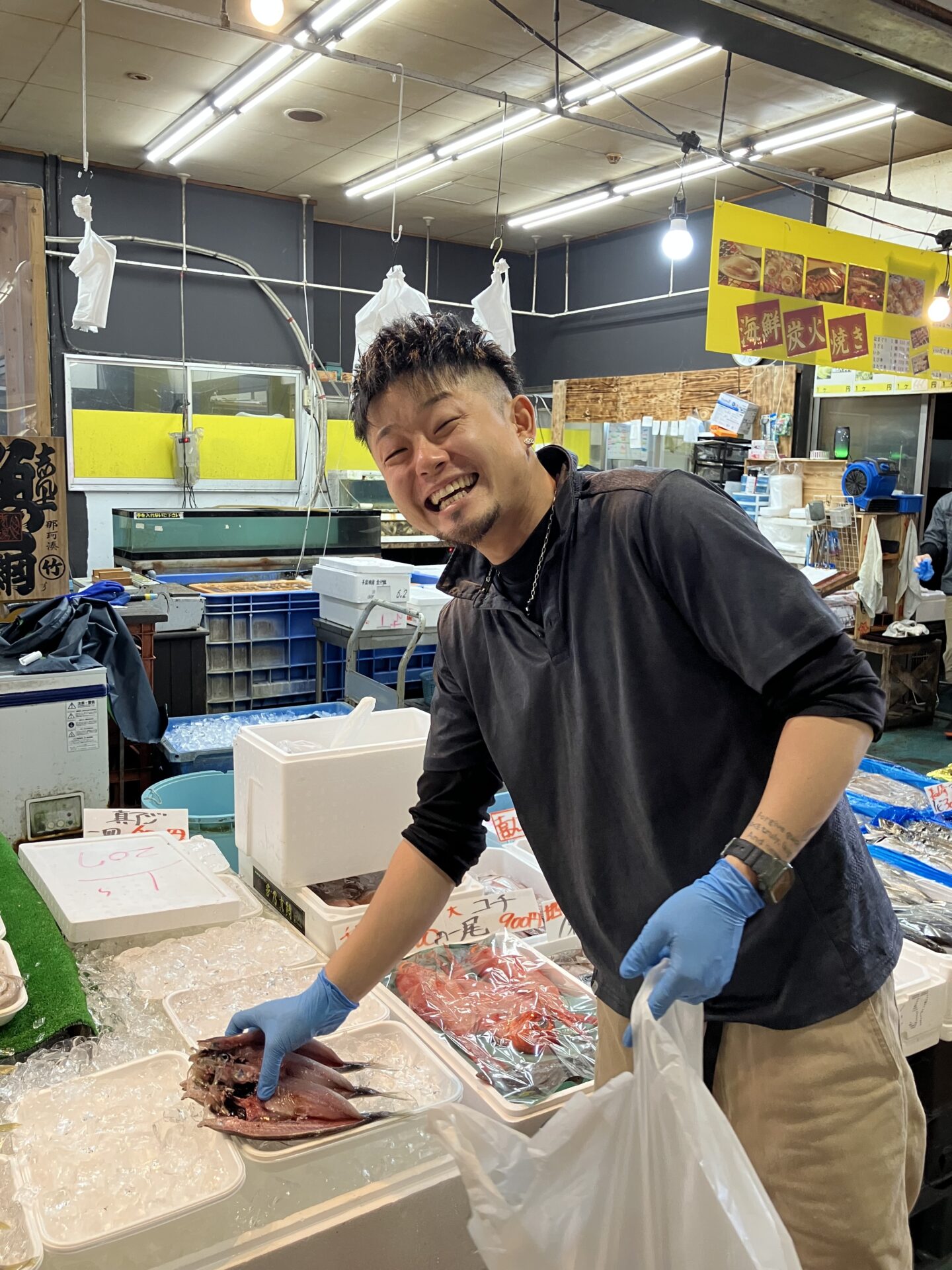 魚一さんではお兄さんがお魚の詰め合わせを作ってくれました!